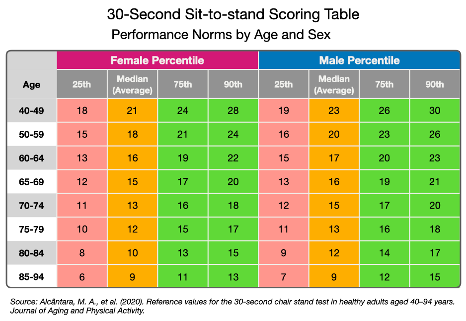 The 30-second sit-to-stand test. It’s one of the most revealing ways to see how your body is holding up over time. What looks like an everyday movement hides a vital metric: lower-body strength.